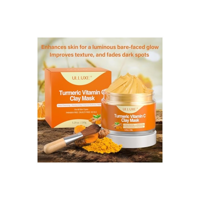 - 【Easy to Use】Ulluxe turmeric vitamin c clay mask comes with a soft mask brush, making your application more convenient. Steps: After washing your face, apply the mask evenly to your face, avoiding eyes and lips. Wait 10-15 minutes to dry it, then wipe it and rinse thoroughly with water. After drying, use toner and your daily skin care products.