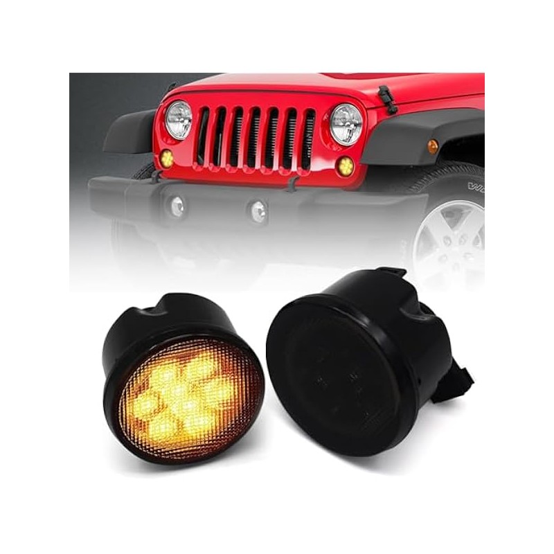 Turn Signal Lights Smoked Lens for Jeep Wrangler 2007-2018 JK JKU Amber LED F...