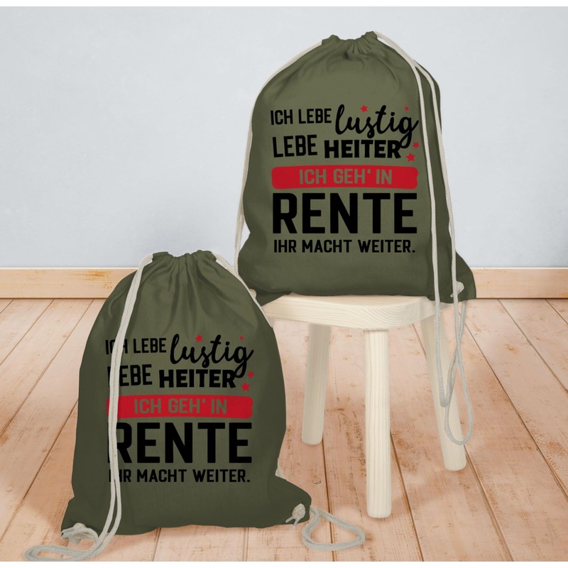 Turnbeutel Rucksack - Rentner Taschen - Ich geh in Rente - Ihr macht weiter. - Unisize - Olivgrün - rentner, zur pensionierung beutel fuer ruhestand abschied kollegin tasche ruhestand, frau weiter