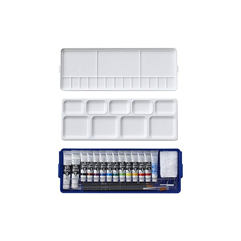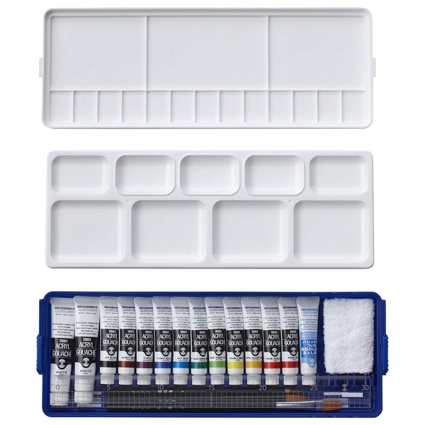 - Accessories: Case with W palette, 11 colors + 2 white pieces, black shaft design brushes (nylon) x 3 (face brushes, coloring brushes, flat brushes), black shaft stick, ruler with acrylic thread (11.8 inches (30 cm)), mini dish towel, palette cleaner