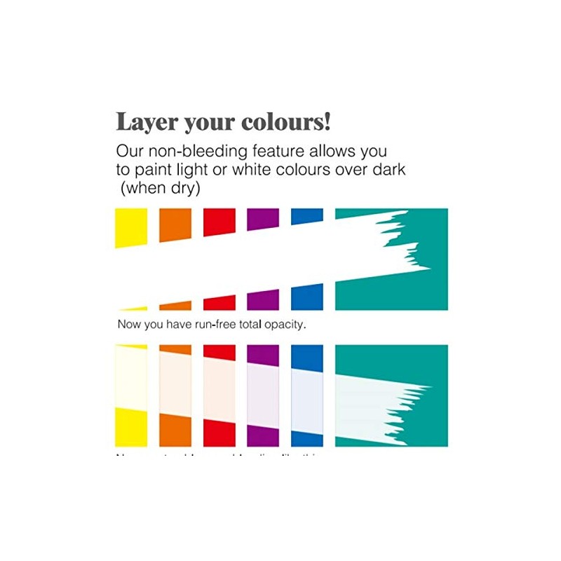 - These brilliant and opaque watercolors have a unique non-bleeding feature that dries to a beautiful, velvety matte finish. This allows you to paint light colors (including white) over dark colors when dry. They dry showing no brush marks.