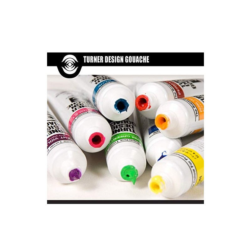 Turner Design Gouache is considered as one of the world's premier opaque watercolors. Much of Turner’s fame comes from this line of color used by New York textile designers, graphic designers and artists for over 50 years. Imported from Japan, these colors have consistently been in the top tier of all artist colors in the world. Brilliance beyond comparison We've spent years perfecting our colours, constantly updating their quality, creating a product so precise there is no competition! A unique non-bleeding feature allows you to paint light colors (including white) over dark colors when dry. Colors dry to a velvety finish showing no brush marks. By using a dry brush technique you can even achieve smoother and thinner layers. These colors employ the Munsell System to make color mixing extremely easy. These colors are constantly improved to be brilliant beyond comparison. Pure gum arabic binder makes Turner Design Gouache adaptable for use with all of your favorite watercolors.