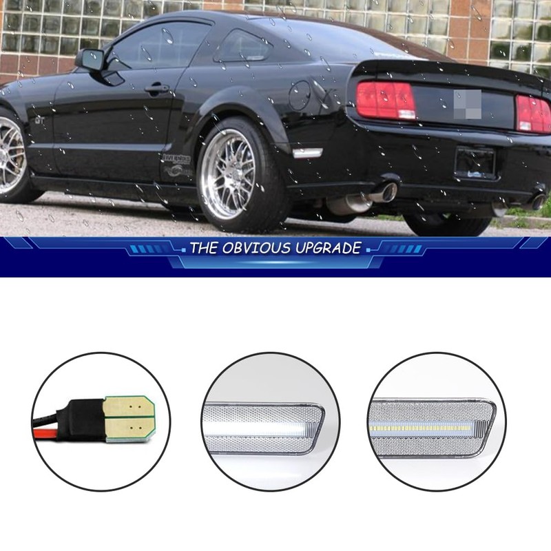 TurningMax For 2005 2006 2007 2008 2009 Ford Mustang Rear Bumper Side Marker lights Clear Lens White LED 4R3Z15A201BA 4R3Z15A201AA