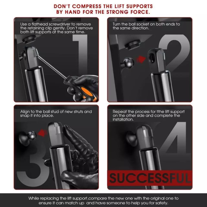 - Items Included: 2x Front Hood Lift Support Shock Strut