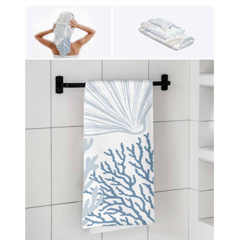 Turquoise Boho Bath Towels Set of 3, Blue Coral Tree Starfish Marine Life Soft Absorbent Facecloth Bath Towel Hand Towel Washcloth Set, Summer Ocean Decorative Towels for Beach Bathroom Gym Spa Swim