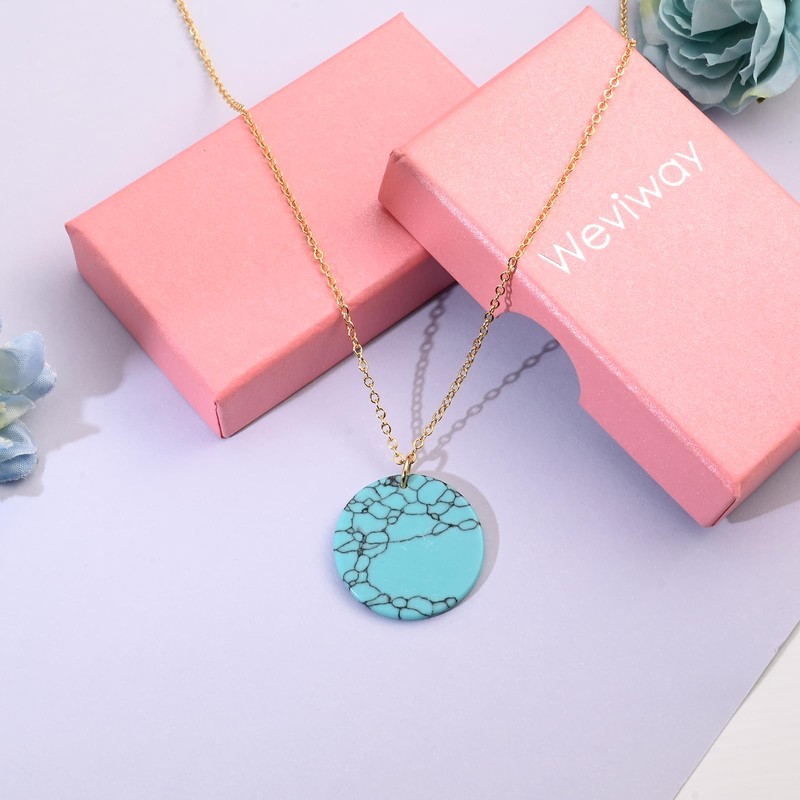 • DESIGN FEATURES: Elegant turquoise disc pendant with natural veining pattern, creating a striking statement piece for any outfit