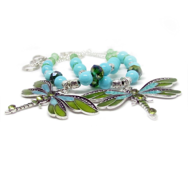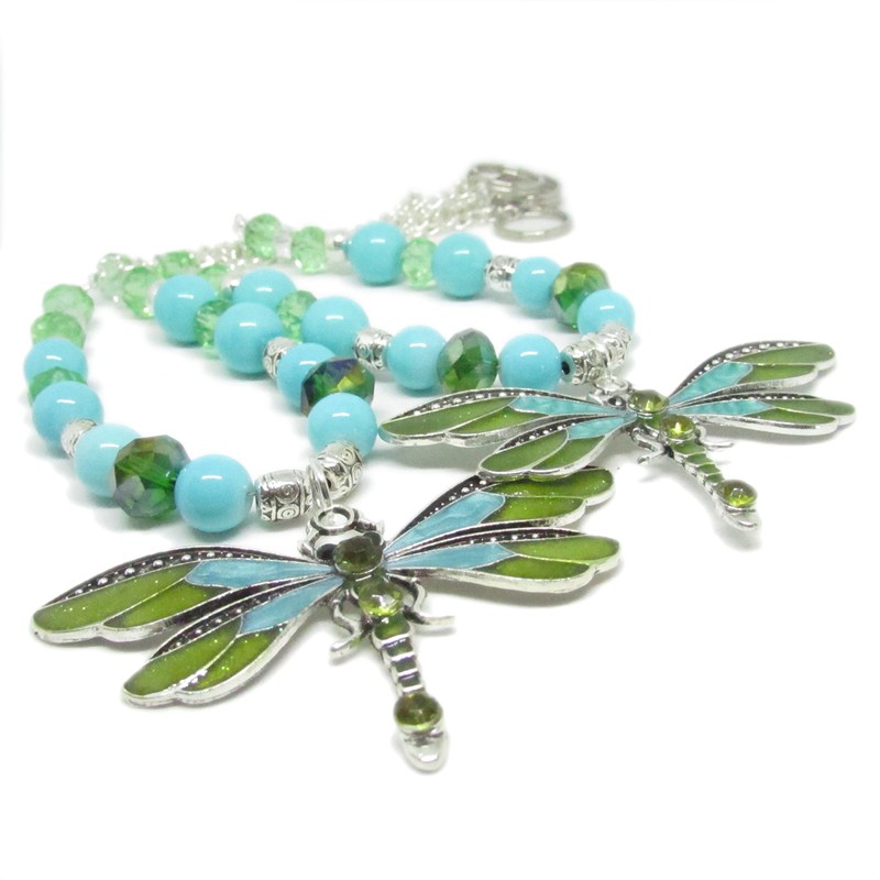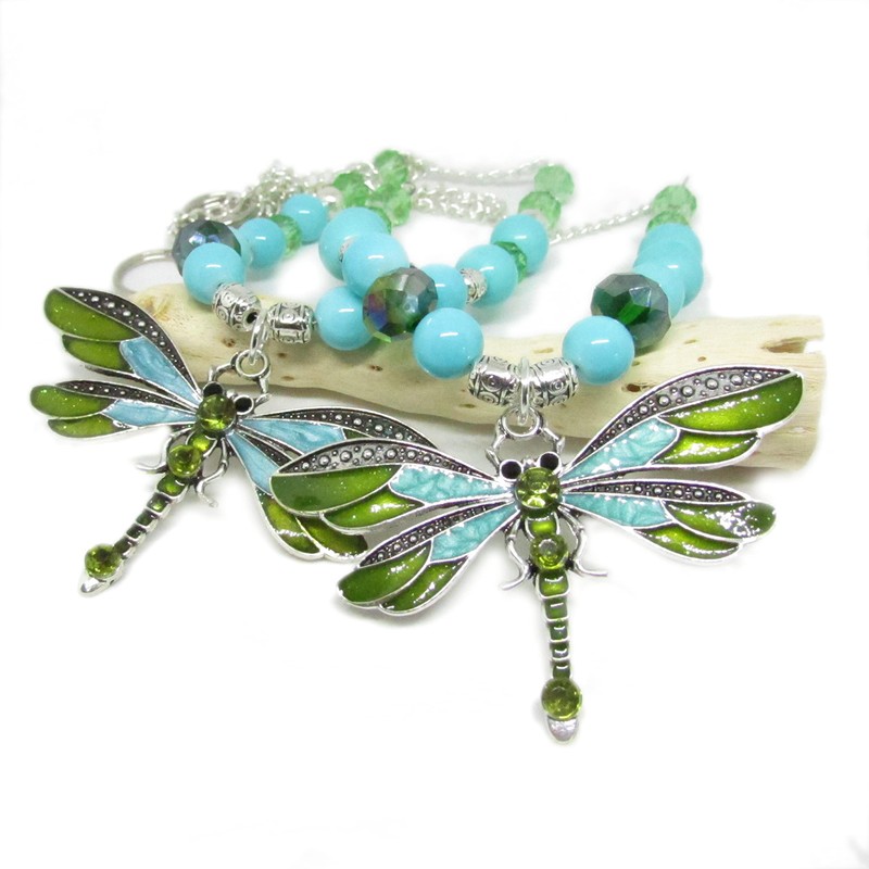 The large dragonfly pendant measures a full 2.5 inches across by 1.5 long. These are 19 inches long, and this is for 1 set of 2 strands