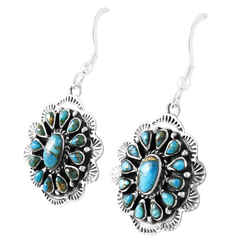 Turquoise Earrings 925 Sterling Silver & Genuine Turquoise (Teal/Matrix)