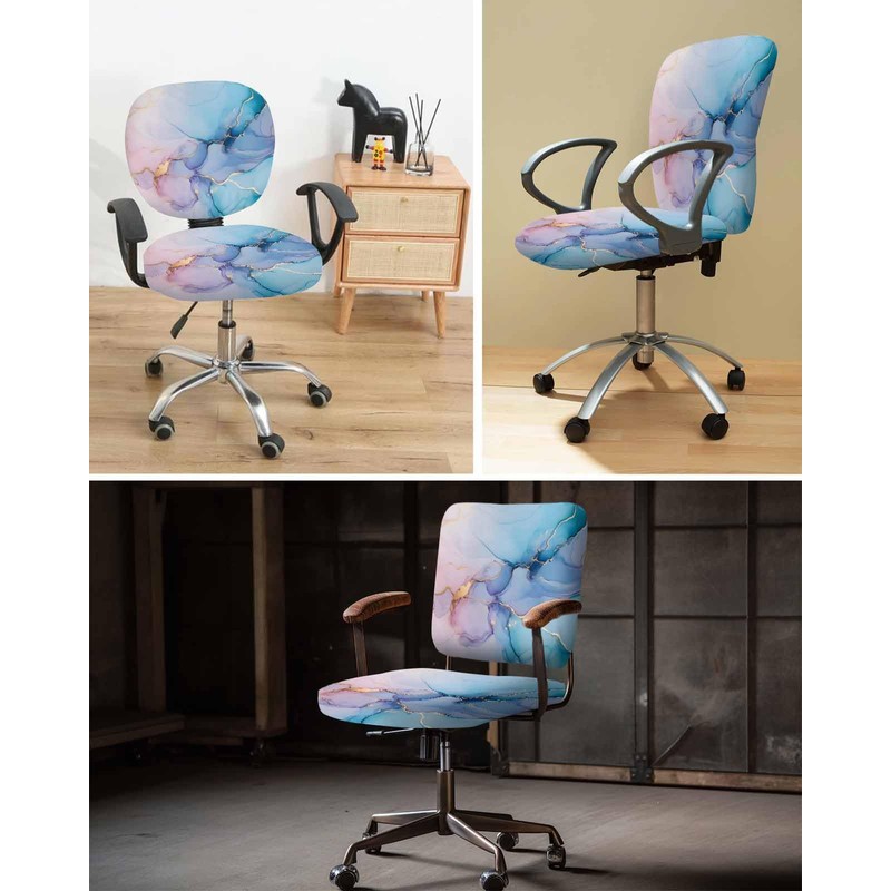 Turquoise Marble Office Chair Covers Stretchable Abstract Pink Purple Blue Ombre Marble Split Computer Desk Chair Cover Universal Spandex Chair Seat Covers Rotating Boss Arm Chair Slipcovers