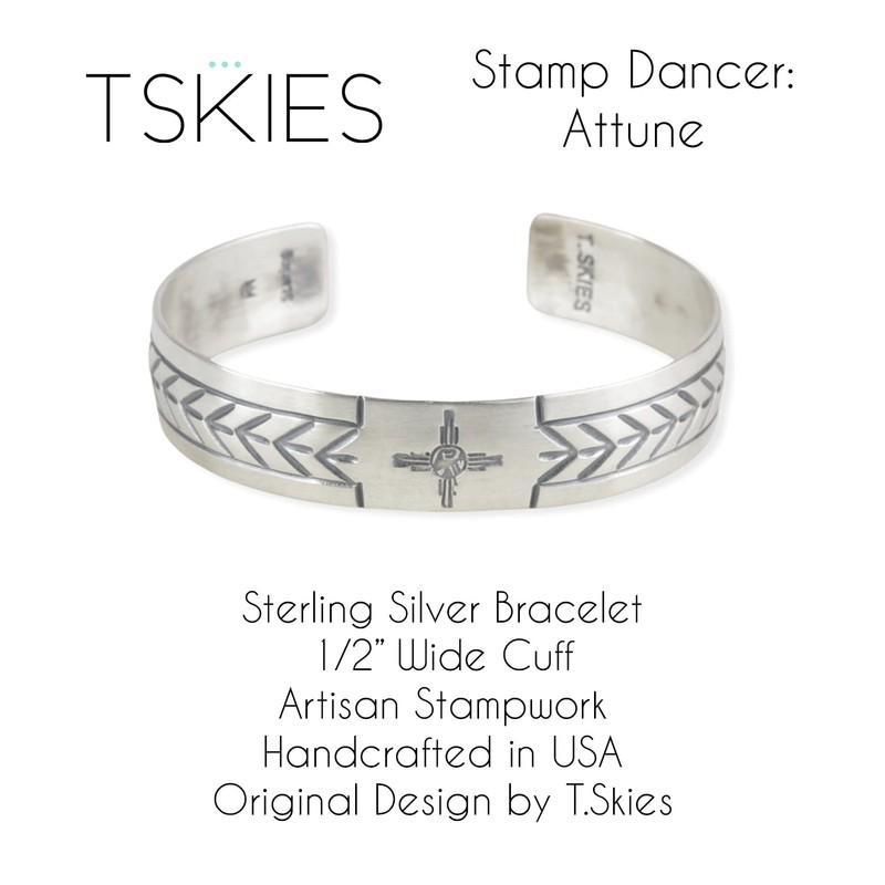 Turquoise Skies TSKIES Stamp Dancer: Attune Sterling Silver Cuff Bracelet (small)
