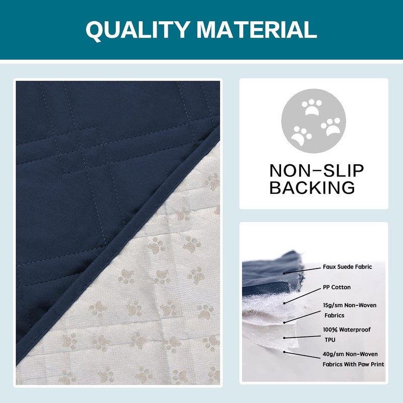 Turquoize 100% Waterproof Recliner Sofa Cover 3 Seat Reclining Couch Cover for 3 Cushion Couch Waterproof Recliner Sofa Protector Cover for Dogs Pets with Non Slip Backing and Strap (Large, Navy)