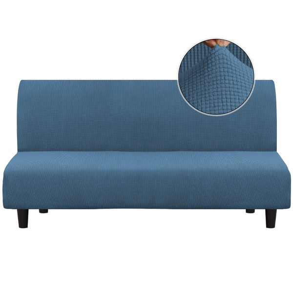 Turquoize Stretch Futon Cover Armless Sofa Cover Sofa Bed Slipcover Futon Couch Cover Furniture Protector with Elastic Bottom Feature Thick Soft Checked Jacquard Fabric, Dusty Blue