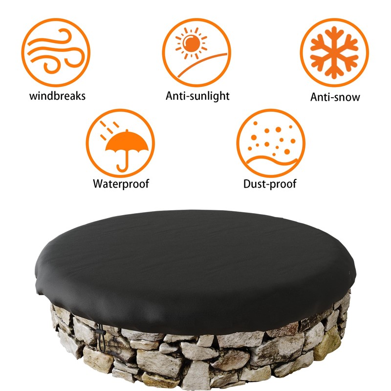 • 【SUITABLE SIZE】: The size of our round built in stone fire pit cover is 47 inches diameter X8 high, please confirm the size of your round fire pit before ordering. Professional Tips: You need to add something in the middle to prevent sagging when water accumulates.