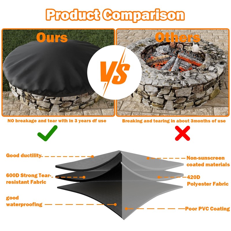 • 【QUALITY ASSURANCE】: Our outdoor built in fire pit cover can largely protect your fire pit from the sun, wind, rain, snow and dust. If you have any problems with our fire pit cover, please feel free to contact us and we will provide you with a satisfactory solution.
