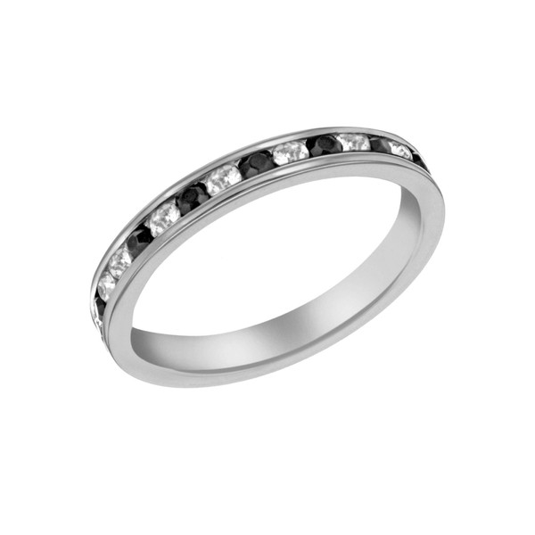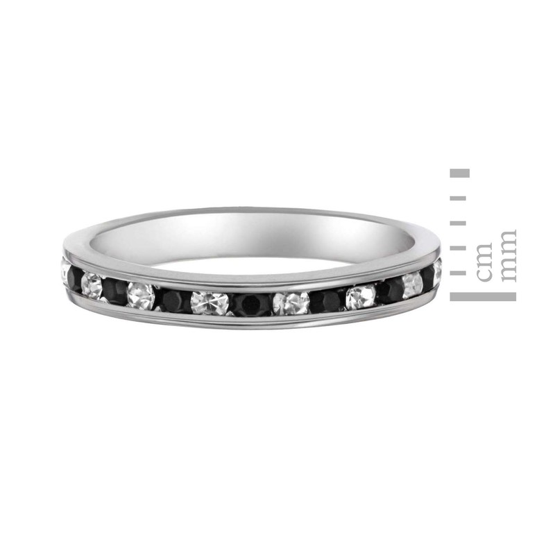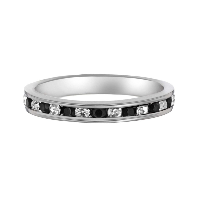 Tuscany Silver Black and White Crystal Eternity Stacking Ring - Size N
