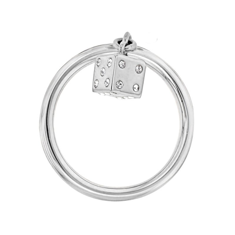 Tuscany Silver Rhodium Plated White Crystal Dice Ring, Silver, Crystal