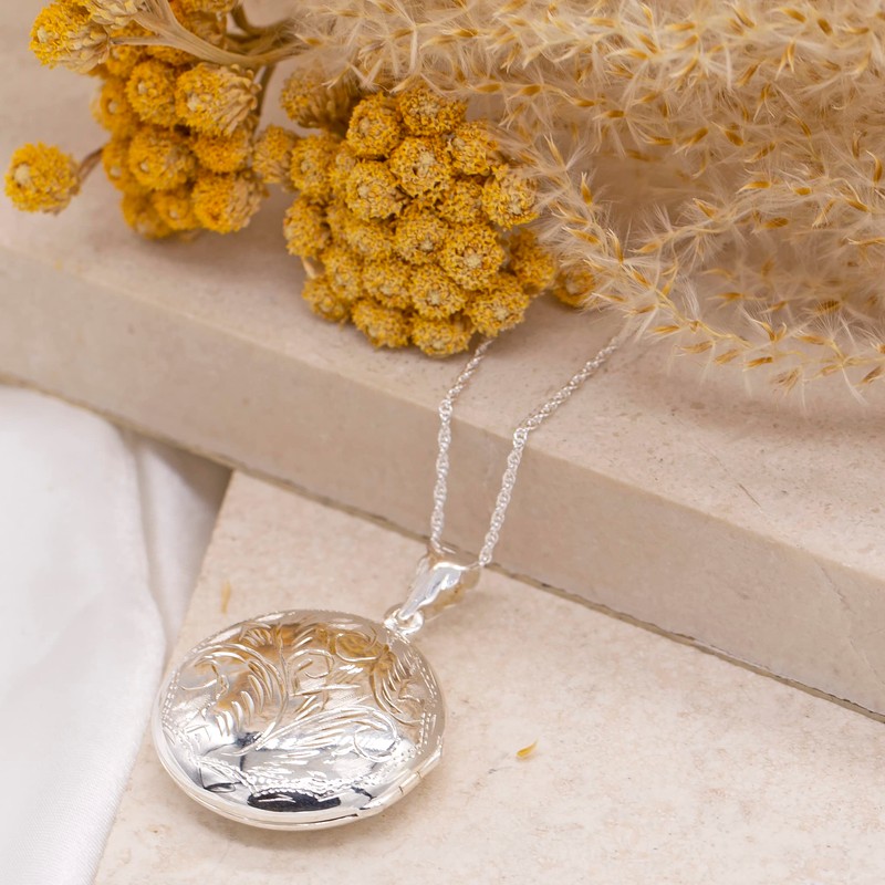 Tuscany Silver Round Large Locket on Prince of Wales Chain of 56 cm/22-inch