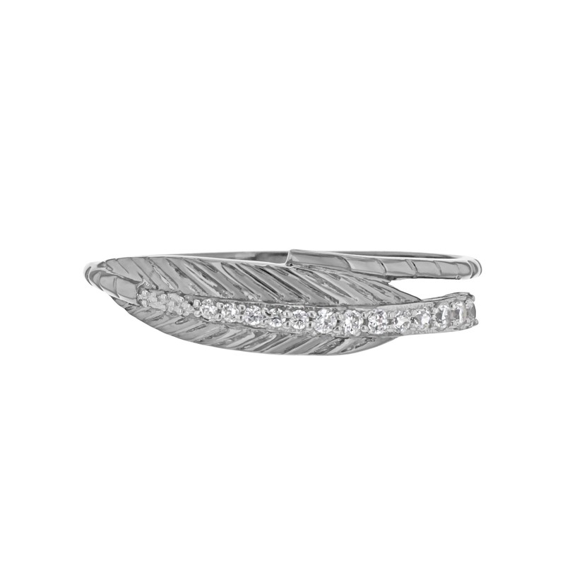 Tuscany Silver Sterling Silver White Cubic Zirconia Oxidized Leaf Ring, Silver, Cubic Zirconia