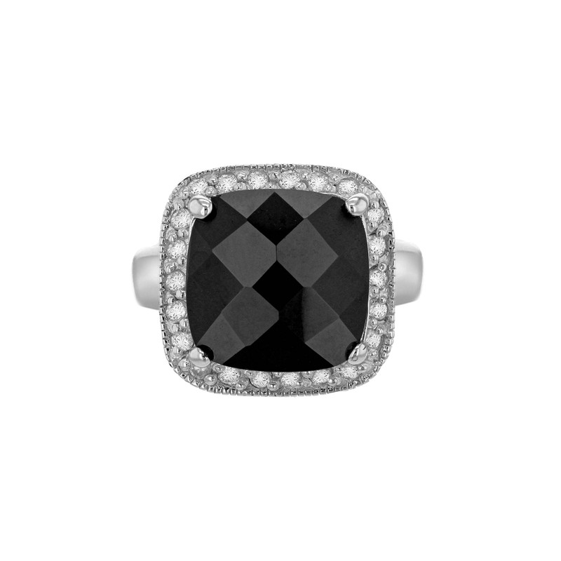 Tuscany Silver Women's Sterling Silver Black and White Cubic Zirconia Facet Square Ring - Size N