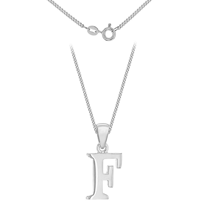 - THE FINER DETAILS: This is a Sterling Silver 9mm x 19.4mm 'F' Initial Pendant on Curb Chain of Length 46 cm/18 Inch