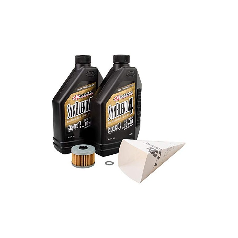 - This kit includes the following items: Two 1 Liter bottles Compatible with Maxima Synthetic Blend 4-Stroke Oil 10W-40 One Tusk oil filter One Tusk crush washer One Tusk Disposable Funnel