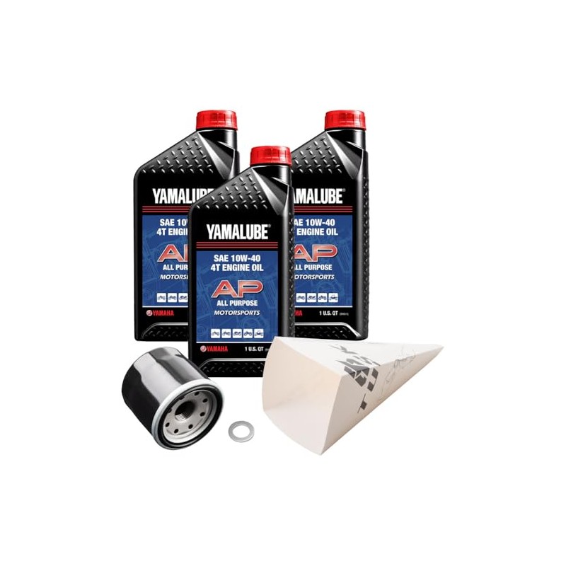 - This kit includes the following items: Three 32oz bottles For Yamalube 10W-40 All Purpose 4-Stroke Engine Oil Tusk oil filter One Tusk 14M drain bolt crush washer One Tusk Disposable Funnel One pair of Tusk PVC Gloves X-Large