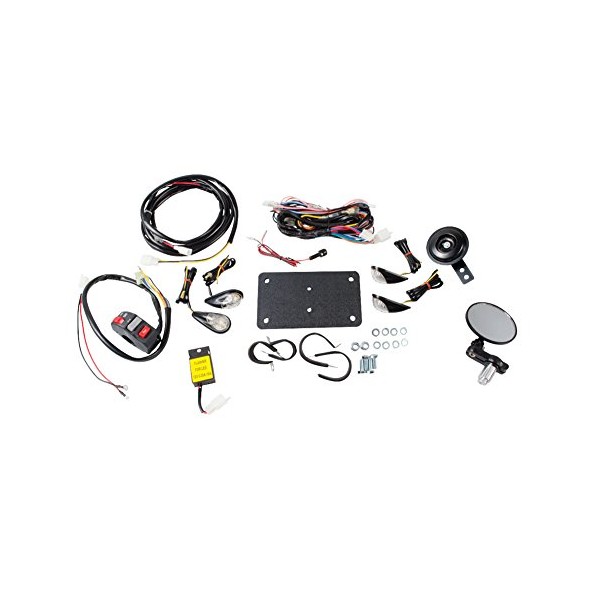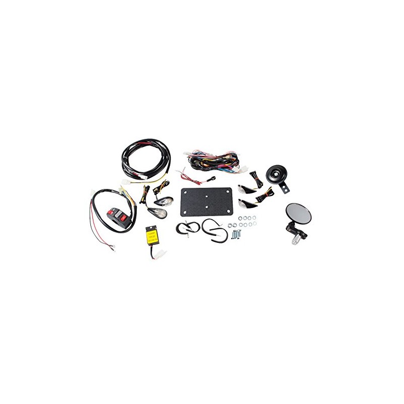 - Kit comes complete with wiring harness, LED flush mount front and rear turn signals, flasher relay, horn, handlebar end mirror, license mount, license light, and control switch.