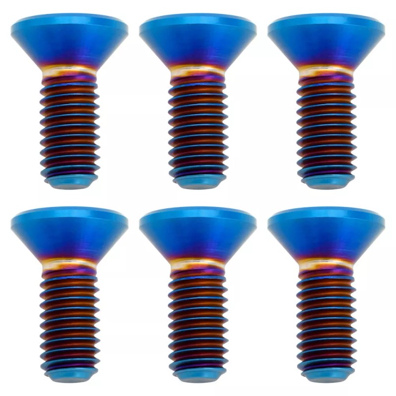 The Tusk Titanium Rotor Bolt Kit is a great way to spruce up the look of your bike, all the while shedding weight. Built to last; the Tusk Titanium Bolt set features, Aerospace GR5 titanium that can withstand temperatures up to nearly 800°F. Low thermal expansion and excellent fatigue resistance. Provides more accurate torque setting and are corrosion resistant. 45% less weight than commonly used steel bolts.