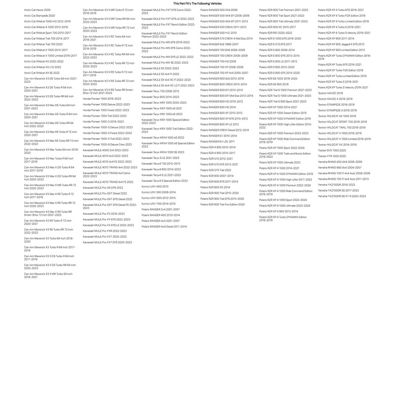 - See fitment guide image for additional Machines this item fits. The kit includes the Tusk scissor jack and UTV mounting hardware.