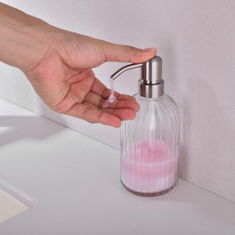 - Elegant Design: The body of this soap dispenser features a non-slip surface, liquid soap dispenser. It is made of High purity lead-free glass, with a thick wall and a comfortable grip