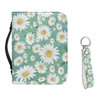Tutolipy Daisy Print Holy Bible Carrying Case Set for Women Men, Zippered PU Leather Bible Cover with Pocket and Handle, Protective Bible Accessories with Wristlet Keychain