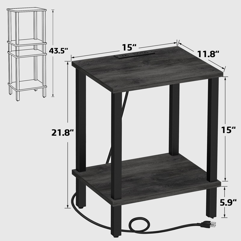 - [End Table with Charging Station] This side table with 2 AC outlets, 2 USB ports, and the 4.9 ft extension cord helps you charge your phone, tablet, lamp, and game console at the same time. Also, the distance between each outlet and port prevents adapters from blocking each other.