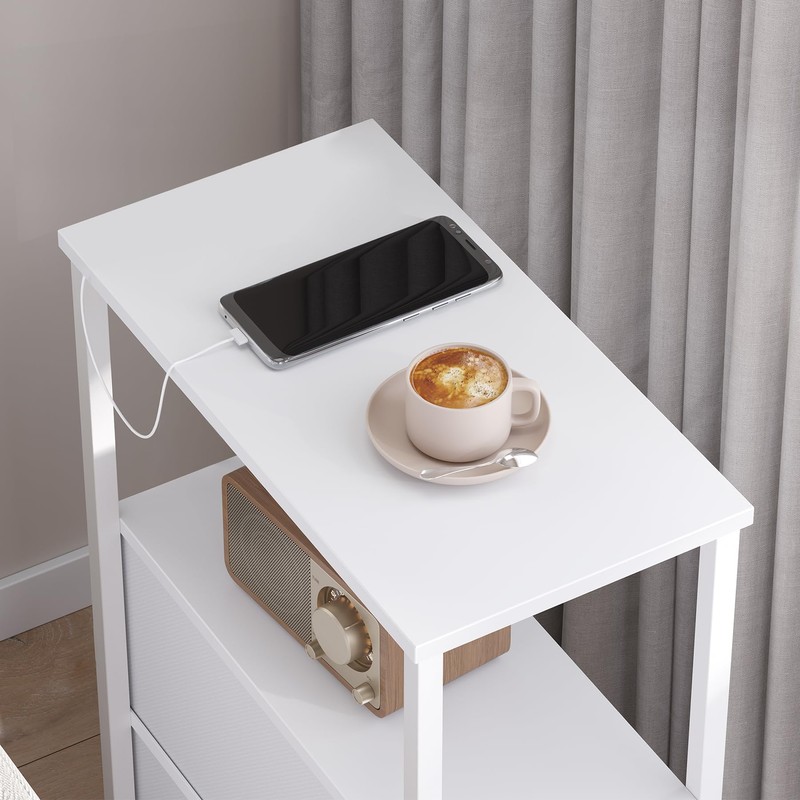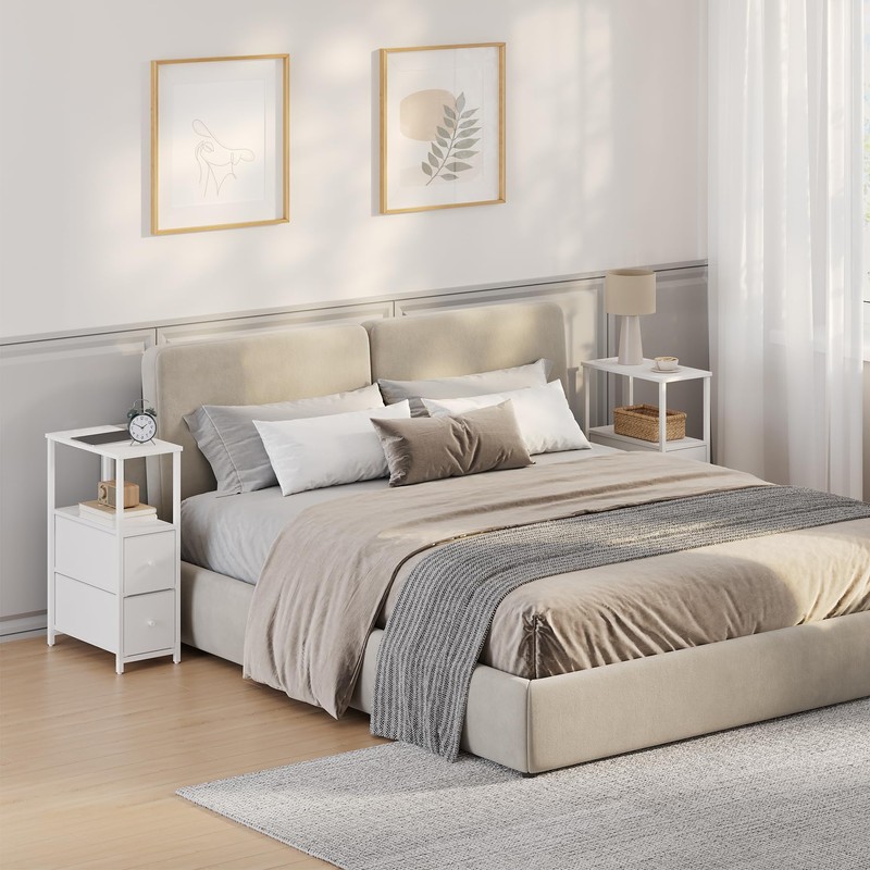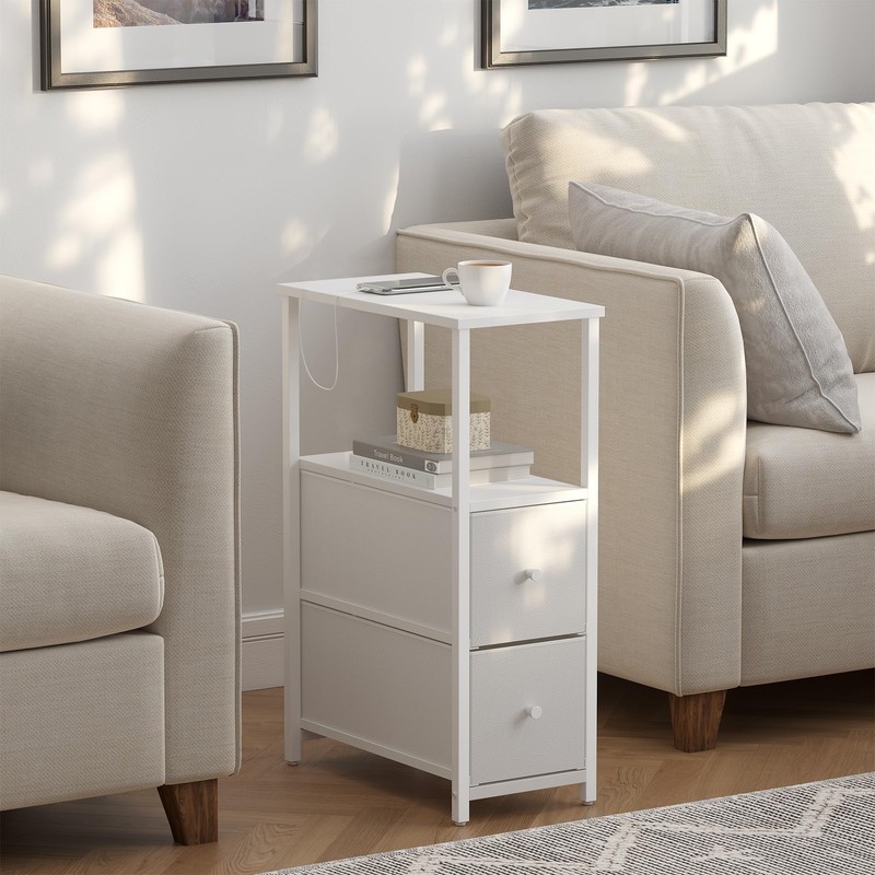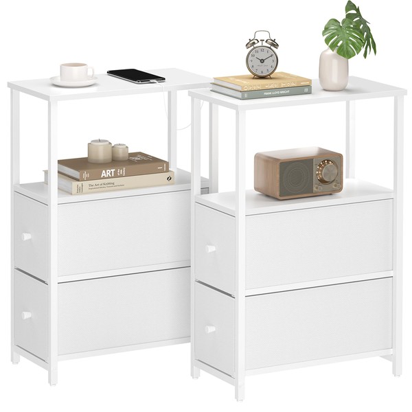 TUTOTAK Small Narrow End Table, Set of 2, Side Table, Nightstand with 2 Cloth Drawers, Couch Table, for Living Room, Bedroom, Bedside, White TB01BW054