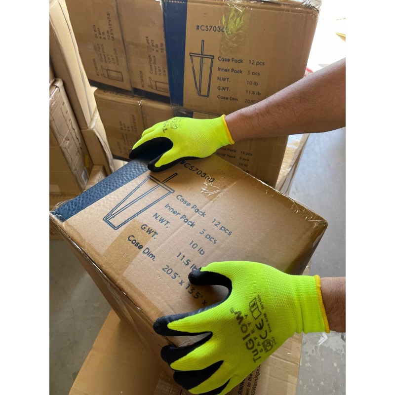 12 Pair  Green Safety Gloves Latex Coated Grip Cut Resistant