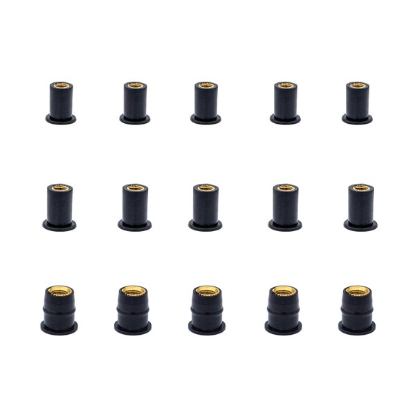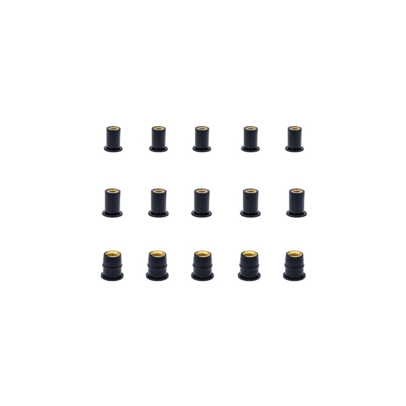Tutuxio 45pcs M4 M5 M6 Black Rubber Well Nuts Kit, Fairing Universal Motorcycle Fasteners Screws Neoprene Expansion Brass Windscreen Nuts, Windshield Fairing Fasteners Nuts Insert