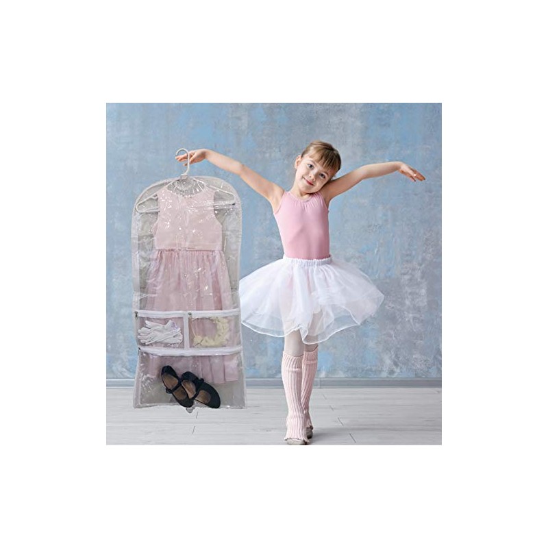 TUVAINC Clear Dance Costume Zipper Garment Bag with Multiple Pockets (White Trim, 18.5 x 36 Inches)