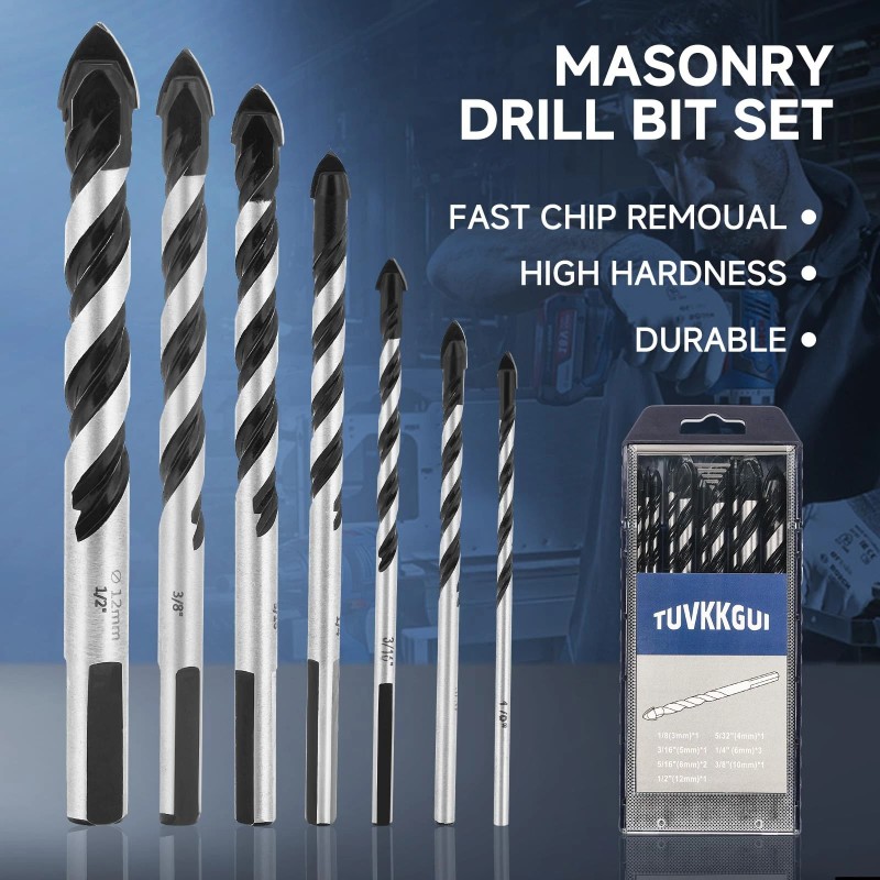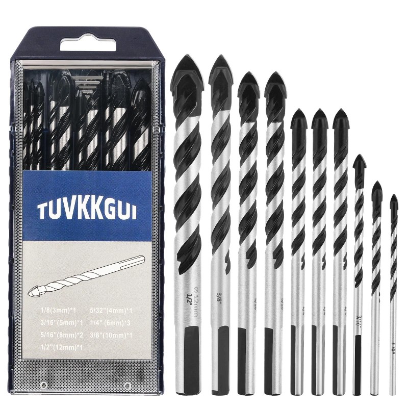 Tuvkkgui Masonry Drill Bit Set (10PCS) for Concrete/Tile/