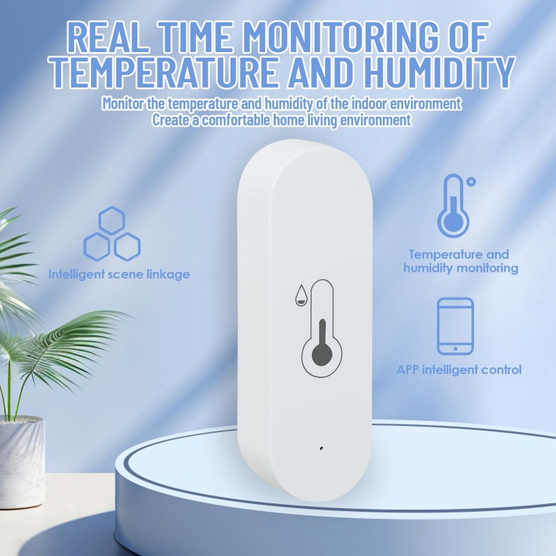 - Real-time temperature and humidity monitoring: this intelligent indoor thermometer hygrometer sensor continuously monitors the room temperature and humidity. The temperature range is between -20 and +90 °C (-4 °F to +140 °F), with an accuracy of ± 1.0 °C. Humidity is measured in the range of 10% to 99% RH, with an accuracy of ± 5%.