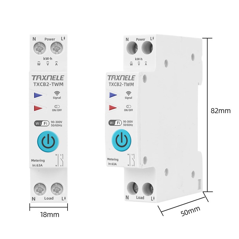 Tuya WiFi Intelligent Circuit Breaker Power Measurement Power Meter KWh 1P 230V 63A Voltmeter Ammeter DIN Rail Smart Life Radio Remote Control Switch Timer Voice Control (32A)