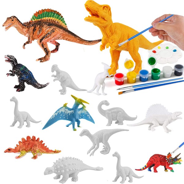 TuYines Dinosaur Painting Set for Children, Dinosaur Figures Craft Set, 14 Pieces 3D Dinosaur Toy Painting Sets, Children from 4 5 6 7 8 9 10 Years Old Boys Girls, Paint Your Own Dino (A)