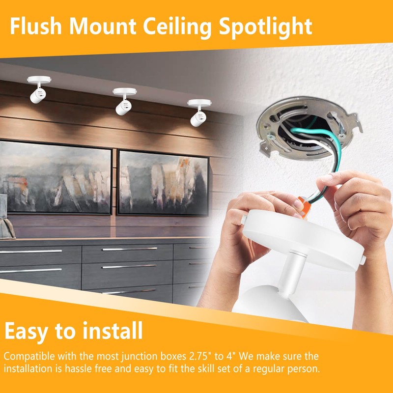 • Easy to Install: The spot ceiling light comes with 4.7" flush mount bracket which fits well with US standard octagonal box. You can freely adjust multiple angles, up and down or right and left, to fit the environment