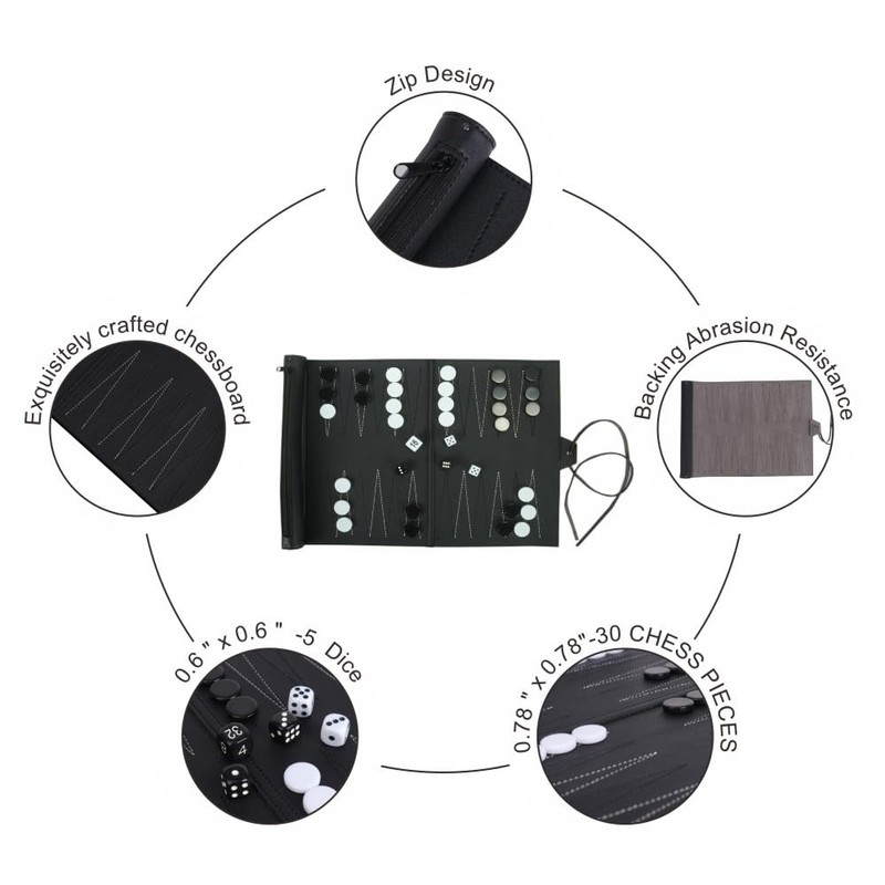 TUZAMA Backgammon Set for Adults, Backgammon Travel Set, Wrinkle-Resistant Foldable Chess and Checkers, Fun Outdoor Games for Family and Friends, Ideal Travel Game Set