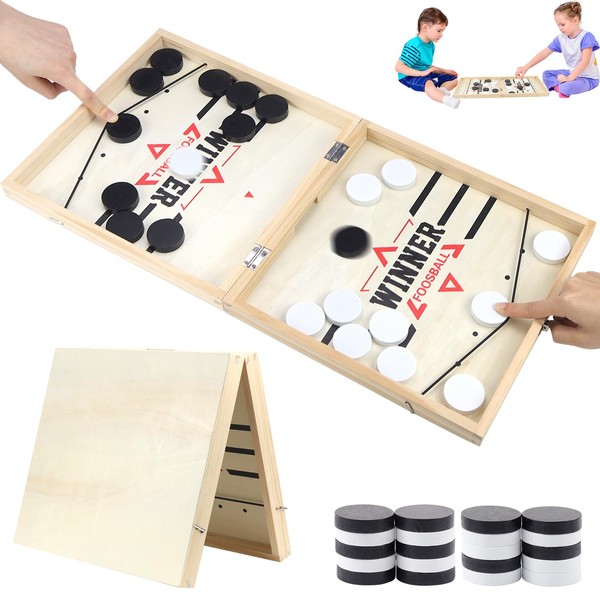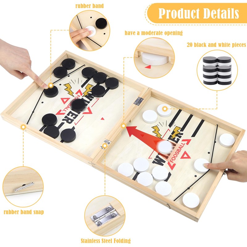 The game is for 2 players and has simple rules. The game is suitable for family members such as adults and children. It is a fast action game. It can improve your child's hand-eye coordination, promote fine motor skills and improve concentration. The foldable transportability brings endless fun for birthday parties, game nights, camping trips and more.