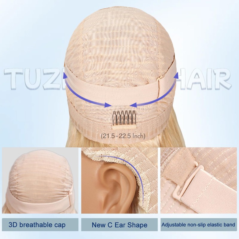 - 【Blonde Glueless Wigs Human Hair Pre Plucked Pre Cut Details】:12-36 Inch Available in Stock, 220% Density Brazilian Lace Frontal Closure Wigs Human Hair. Medium cap size(22 inch - 22.5 inch), with 3 combs and adjustable straps make it fit most people and easier to install and wear.Can Be Dyed ,Permed, Bleached, Highlighted, Straighten or Styled As Your Own Hair.