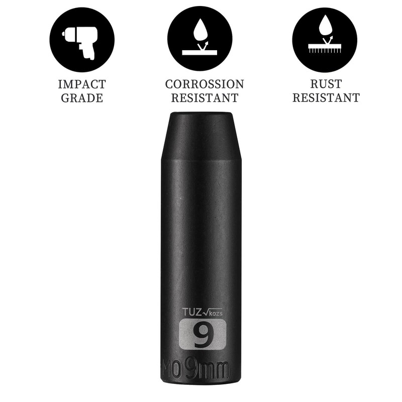 TUZkozs 3/8-Inch Drive 9mm Deep Impact Socket with 6-Point Design, Heat-Treated Chrome Molybdenum Alloy Steel, Metric,Hex Deep Socket