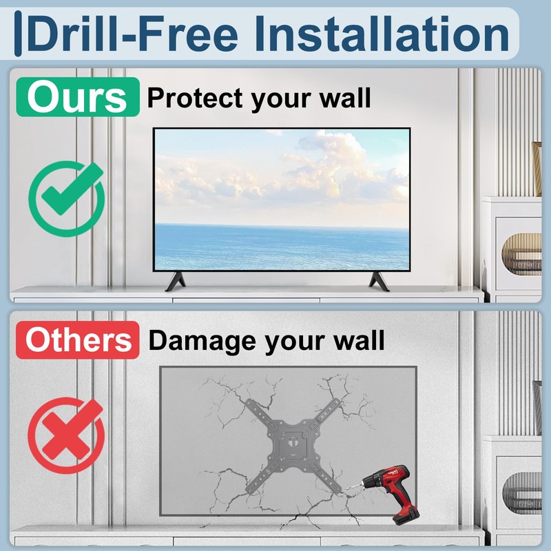 • ★No Drill Installation --- TV stand for RCA TV stand replacement safeguarding your walls from damage and unsightly holes, preserving their pristine condition.