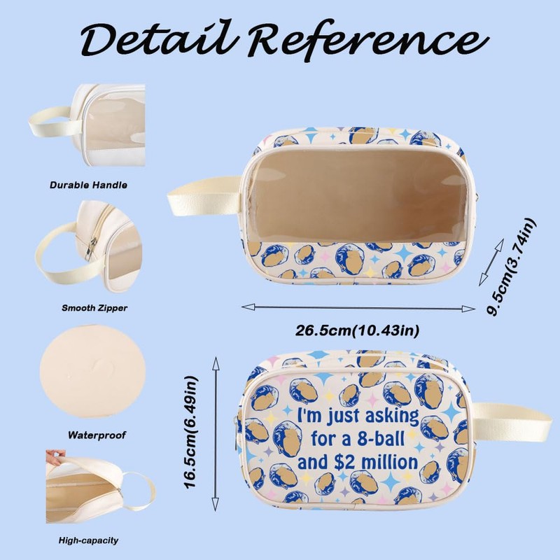 TV Show Inspired Gift I'm Just Asking for A 8 Ball and 2 Million Clear Cosmetic Bag Sarcastic Humor Gift (MillionBag)