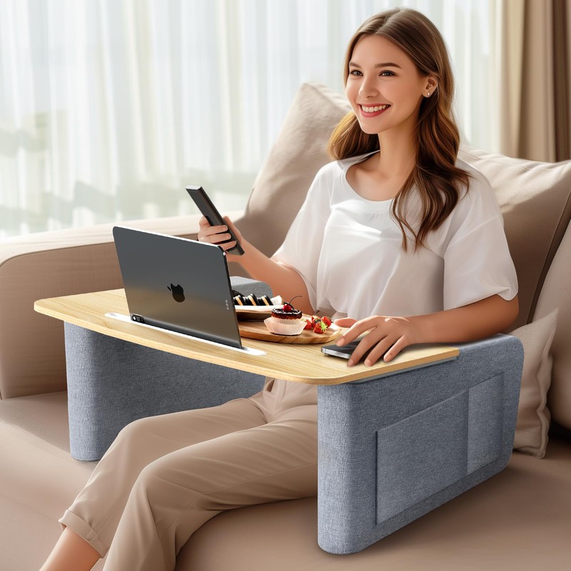 - Innovative Combo Design: This lap tv tray combines a sturdy desk surface with comfortable armrests, offering the perfect portable workstation for your laptop or tablet. It also doubles as a versatile tray for eating in bed or on the couch.