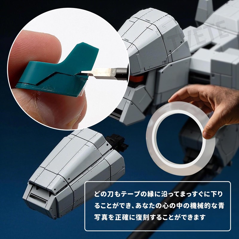 Engraved hard edge tape for model remodeling. Moderate thickness, not easy to warp edges and fit well on models. Transparent color makes it easy to locate.