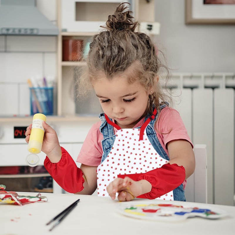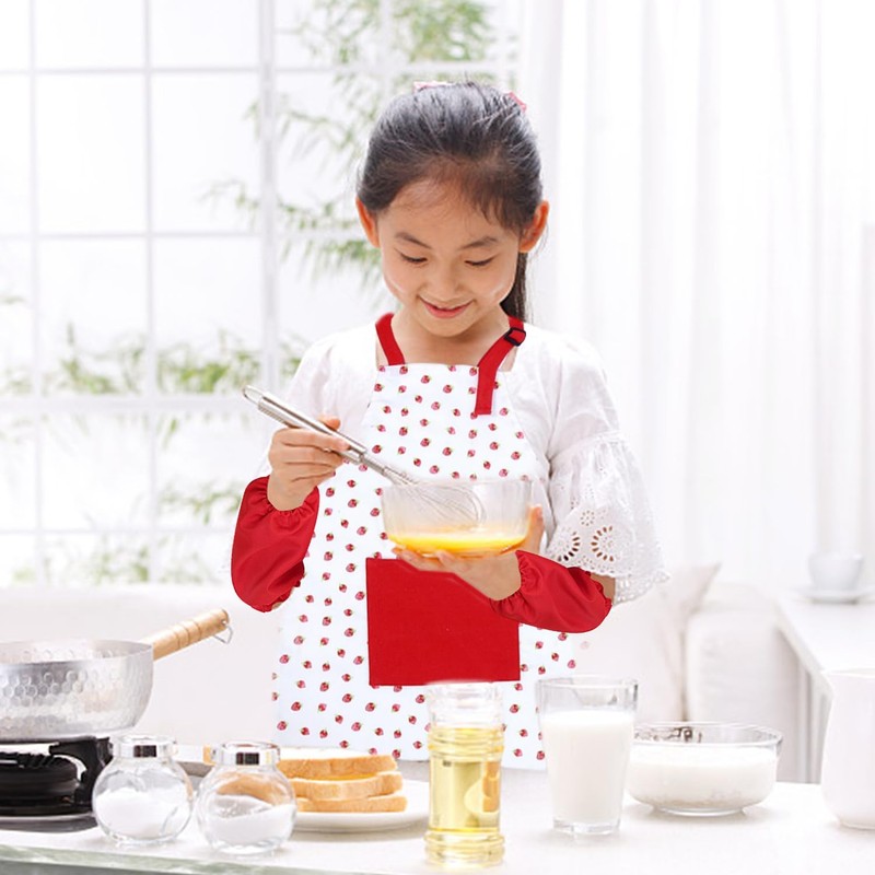 - 【Unique Design】The Apron Is Designed With Cute Strawberry Patterns To Attract Children'S Attention And Increase The Fun Of Cooking And Painting. The Sleeve Cover Is Simple And Practical, And Is Easy To Put On And Take Off.